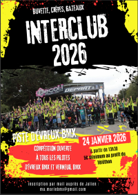 Parents et pilotes, Évreux BMX est partenaire du Téléthon et propose une rencontre interclub avec le club voisin de Verneuil BMX le samedi 24 janvier 2026 à partir de 14h00 (accueil à 13h30). Pour mener à bien cet évènement, nous aurons besoin de volontaires dès le matin (vers 11h) pour l’installation des barrières, tables, etc...Et l’après-midi, il faudra du monde tant sur la piste qu’autour (buvette, secrétariat, arbitrage, etc.). Nous sollicitons aussi les parents pour apporter crêpes et gâteaux. Merci de vous faire connaître auprès de Julien à mu.mariebmx@gmail.com si vous êtes dispos et à quel poste. Le club se réserve le droit de reporter ou d'annuler l'événement en fonction des conditions météo Document